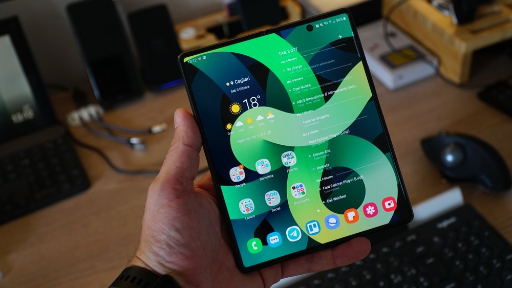 O gerenciamento da home de cada tela é dissemelhante e você precisa configurar cada um deles separadamente. Graças ao aumento da tela externa, finalmente o Fold pode ser usado de verdade quando ele está fechado. E é muito bom usar ele nesse modo, com o contra de que o teclado é muito incômodo nessa tela estreita, melhorando com o uso do Swype.